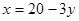 Самостоятельная работа учащихся: Среди решений уравнения х + 3у - 20 = 0 найдите такую пару, которая состоит: