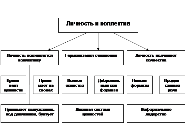 Рис № 4 Модели развития отношений между личностью и коллективом.