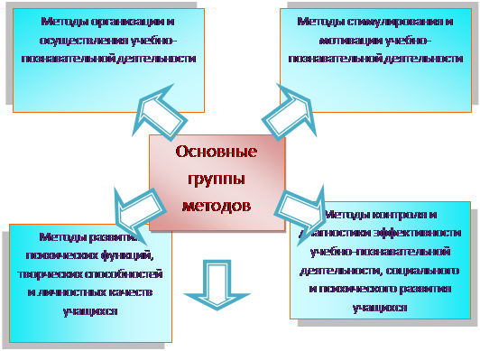 В педагогической деятельности используются разнообразные методы обучения, руководствуясь педагогической целесообразностью. Выбор методов осуществляется на основе целевых установок урока, содержания изучаемого материала и задач развития учащихся в процессе обучения. Для реализации основных принципов компетентностного подхода и рационального сочетания индивидуального и коллективного образования, отбираются наиболее эффективные методы организации обучения.