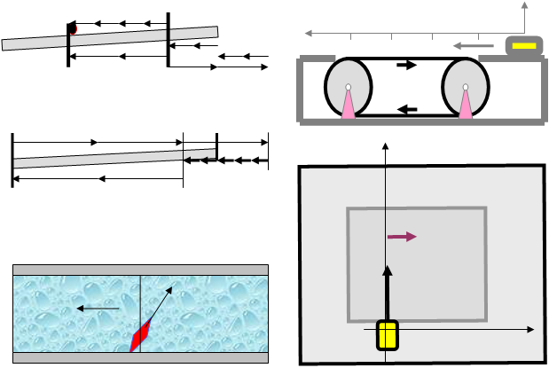 Задача 5: . На рисунке 5 – вид сверху на транспортёр. Построить систему координат и описать движение в ней тела, имеющего скорость 10 м/с, до полной остановки этого тела. Скорость ленты – 5 м/с, ширина её – 10 м, k = 0,4