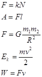 Пример: для формул F = mg ; A = Fl : a) F = mg, b)A = Fl