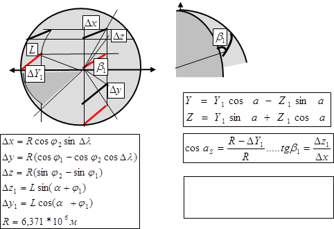 Задание : длину дуги большого круга /ортодромии/ можно выразить через сферические координаты её крайних точек. Повернём шар вокруг горизонтальной оси так, чтобы нижняя точка вертикальной проекции хорды ортодромии оказалась в центре круга. Докажите, что длина ортодромии S = R3*arccos (sin φ1*sinφ2+cosφ1*cosφ2*cos(γ2-γ1)).