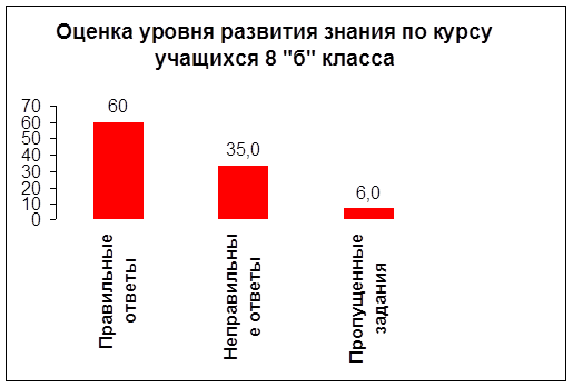 Проанализировав данную ведомость, составляется диаграмма, отражающая процент правильных ответов.