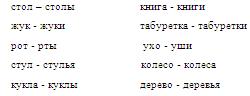 - изменение имен существительных по числам: