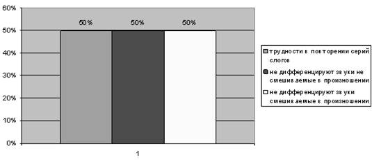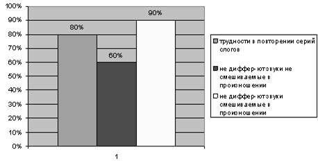 Речевое развитие детей соответствует возрастным особенностям развития (приложение 2 таблица №3). По заключениям врачей (отоларинголога, окулиста, невролога) развитие детей соответствует норме. При восприятии речи детей у всех наблюдается нечеткость, смазанность речи.