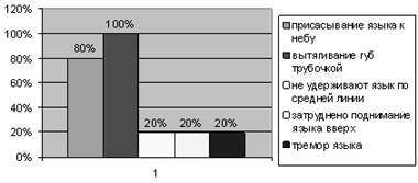 Движения языка более точные, более полного объема (приложение 4 таблица №20). Артикуляционная моторика развита достаточно у 80% детей, принимавших участие в исследовании. Затруднено поднимание языка вверх у 20% детей. Гиперсаливация не наблюдается. Результаты можно отразить в диаграмме: