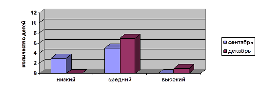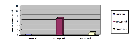 Мы видим, что увеличилось количество детей (до 7), набравших средний балл, один ученик набрал высокий балл, низкого результата не показал никто.