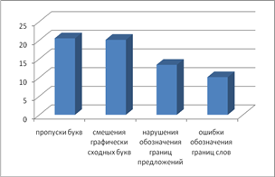 Рисунок 1. Наиболее распространенные ошибки, допущенные детьми 1-2 класса при обследовании письма