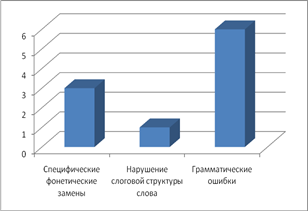 Рисунок 2. Количество детей 1-2 класса допустивших специфические дисграфические ошибки