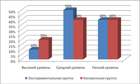 Рис. 1 - Результаты диагностики по первой методики в контрольной и экспериментальной группах.
