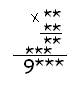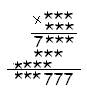 Так как от умножения множимого (число, меньше 1000) на последнюю цифру множителя получается четырёхзначное число, начинающиеся цифрой (третья строка), то последняя цифра множителя 8 или 9.