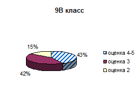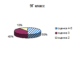 Как видно из диаграмм, хоте не на много, но результаты проверочной работы в 9Г классе лучше, чем в 9В классе. Отмечу, что по успеваемости 9Г класс уступает 9В классу.