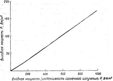 Рис. 12. Зависимость выходной мощности фотоэлектрического генератора от интенсивности солнечного излучения
