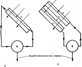 Рис. 13. Типы фотоэлектрических генераторов: а—однокаскадный; б—многокаскадный.