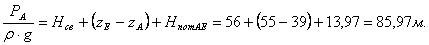 3.4.1. Максимальный пьезометрический напор имеет место в точке А трубопровода и равен: