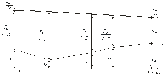 Рис. 4.1. График изменения напоров по длине трубопровода