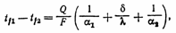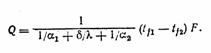 Величина 1/К, обратная коэффициенту теплопередачи, представляет собой термическое сопротивление теплопередаче. Величины l/a1 и 1/a2 являются термическими сопротивлениями теплоотдаче, а d/l—термическим сопротивлением стенки. Из уравнения следует, что термическое сопротивление теплопередаче равно сумме термических сопротивлений теплоотдаче и стенки.