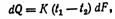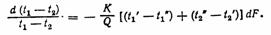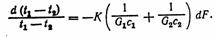 где К—коэффициент теплопередачи; t1 и t2—температуры теплоносителей по обе стороны элемента dF.