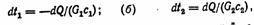 где G1 и G2—расходы первого и второго теплоносителей; c1 и с2—теплоемкости первого и второго теплоносителей.