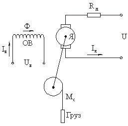 Такая схема нагружения двигателя постоянного тока соответствует подъему или спуску постоянного груза.