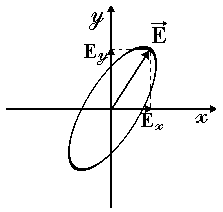 изменяется со временем так, что конец его описывает эллипс. Такой свет называется эллиптически поляризованным. При разности фаз