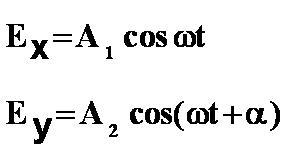Проекции световых векторов этих волн на соответствующие оси изменяются по закону: