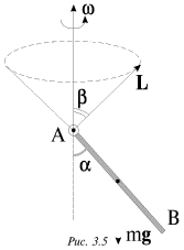 между осью и стержнем остается постоянным. Вектор момента импульса L, относительно точки А движется по конический поверхности с углом полураствора