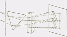 На рис. 4.4 представлен еще один вариант опыта со скрещенными призмами: через призмы проходят два одинаковых световых пучка. Оба пучка формируют на экране одинаковые полоски спектра, несмотря на то, что в первой призме лучи одного и того же цвета (но из разных пучков) проходят пути разной длины.