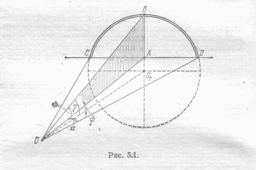 эта прямая обозначена как прямая OO1; O — наблюдатель, ОСD — плоскость земной поверхности, ÐAOO1 = j — угловая высота Солнца над горизонтом. Чтобы найти tg(j), достаточно разделить рост наблюдателя на длину отбрасываемой им тени. Точка O1 называется противосолнечной точкой, она находится ниже линии горизонта СD. Из рисунка видно, что радуга представляет собой окружность основания конуса, ось которого есть ОO1; j - угол, составляемый осью конуса с любой из его образующих (угол раствора конуса). Разумеется, наблюдатель видит не всю указанную окружность, а только ту часть ее (на рисунке участок СВD), которая находится над линией горизонта. Заметим, что ÐАОВ = Ф есть угол, под которым наблюдатель видит вершину радуги, а ÐАОD = a — угол, под которым наблюдатель видит каждое из оснований радуги (где, по английскому поверью, закопан горшок с золотом). Очевидно, что