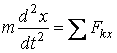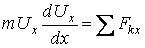 В случаях, когда при решении задачи надо искать зависимость скорости от координаты х, а не от времени t (или когда сами силы зависят от х), уравнение (13) преобразуют к переменному х. Так как dVx/dt=dVx/dx*dx/dt=dVx/dx*Vx, то вместо (13) получим