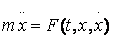 Решение основной задачи динамики сводится к тому, чтобы из данных уравнений, зная силы, найти закон движения точки, т. е. x=f(t). Для этого надо проинтегрировать соответствующее дифференциальное уравнение. Чтобы яснее было, к чему сводится эта математическая задача, напомним, что входящие в правую часть уравнения (12) силы могут зависеть от времени t, от положения точки, т. е. от х, и от ее скорости, т. е. от Vy=x. Следовательно, в общем случае уравнение (12) с математической точки зрения представляет собой дифференциальное уравнение 2-го порядка, имеющее вид