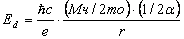 Еd= 6,582∙10-8(2m/2m×½×7,297∙10-3): 4,06∙10-16 = 5,915∙105 эВ