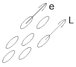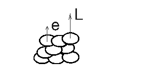 Несферичность молекулы можно характеризовать вектором единичной длины е, который либо параллелен оси молекулы, либо перпендикулярен ее плоскости. Жидким кристаллом называют жидкость, состоящую из таких молекул, которые не только удерживаются в среднем на некотором расстоянии а друг от друга, но и имеют векторы е, параллельные определенной оси L: