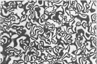 Нематические жидкие кристаллы характеризуются так называемой шлирен-текстурой (рис. 3, а), представляющей собой систему тонких нитевидных линий и точек с нитеобразными черными "хвостами". Эти линии называют дисклинациями (от греч. "клине" - наклон).Они представляют собой места резкого изменения направления ориентации длинных осей молекул. Характерной текстурой смектиков является веерная текстура, которая во многом напоминает кристаллы обычных твердых тел (рис. 3, б), что подчеркивает наибольшую аналогию в структурной организации двумерно-упорядоченных смектиков и трехмерно-упорядоченных кристаллов. Неориентированные холестерики образуют конфокальную текстуру, которая состоит из отдельных и связанных между собой сложных образований, называемых конфокальными доменами (рис. 3, в).