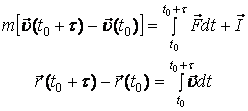 где знаки «минус» и «плюс» соответствуют началу и концу действия импульса. Если на частицу действует срезу несколько ударных сил