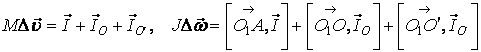 где J – центральный тензор инерции. Если к телу приложены ударные импульсы Ii (i=1, 2, 3 …, l), то изменение кинетического момента твердого тела относительно центра масс