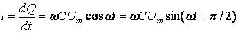 Из формулы (2.28) видно, что ток в цепи с емкостью является синусоидальным и опережает напряжение по фазе на угол