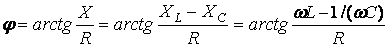 зависит от соотношения между индуктивным и емкостным сопротивлениями. Если XL>XC, то угол