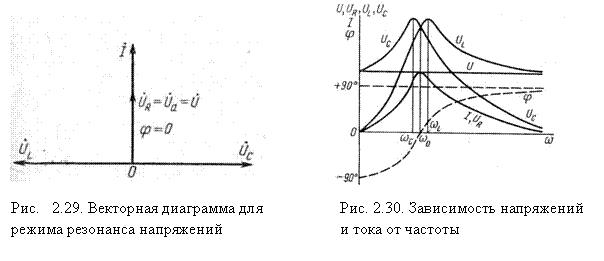Векторная диаграмма напряжений для режима резонанса представлена на рис. 2.29. Реактивная составляющая напряжения (2.41) равна пулю; следовательно, полное напряжение