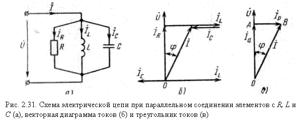 p составляющие. При параллельном соединении элементов цепи, когда ко всем ветвям подводится одно и то же напряжение, активную и реактивную составляющие имеет ток (см. рис. 2.33).