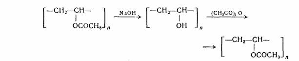 Реакции этого типа были использованы Штаудингером для доказательства макромолекулярного строения природных, а затем и синтетических полимеров. Поливинилацетат был превращен им в поливиниловый спирт, а последний — снова в поливинилацетат:
