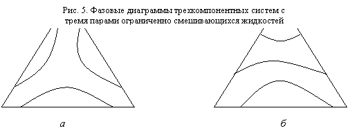 В зависимости от природы трех компонентов и их взаимодействия друг с другом фазовые диаграммы трехкомпонентных систем имеют различный вид.