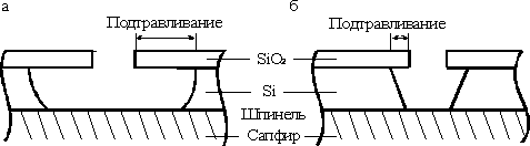 При изотропном травлении кремния используются маски из нетравящихся металлов Si3N4 или SiO2 (иногда для неглубокого травления). Резист используется редко, так как HF¾HNO3 быстро проникает через пленку. Для травления кремния использовались также щелочные травители