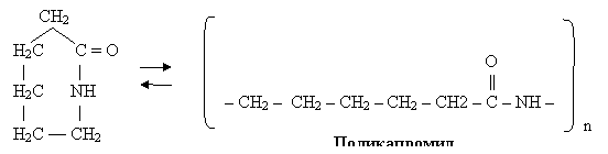 Капрон – полиамидное волокно, получаемое из поликапроамида, образующегося при полимеризации капролактама (лактама аминокапроновой кислоты):
