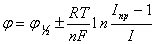 Для этого случая связь между потенциалом и током в любой точке вольтамперной кривой описывается уравнением Гейровского - Ильковича: