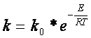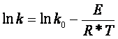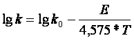 где k0 - константа, или предэкспоненциальный множитель; R - газовая постоянная, равная 1,987 кал/град*моль', Т - температура в градусах шкалы Кельвина; е - основание натуральных логарифмов.