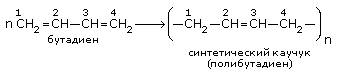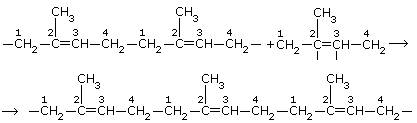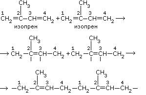 При этом свободные валентности средних углеродных атомов (2 и 3) смыкаются и образуют двойные связи в середине молекул, ставших теперь уже звеньями растущей цепи.