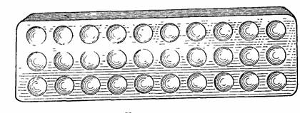 Вместо пробирок частные реакции можно выполнять также на фарфоровых капельных пластинках (рис. 6) или особых предметных стеклах с углублениями (рис. 7). В этом случае расход реактивов минимальный, а результат реакции хорошо заметен.