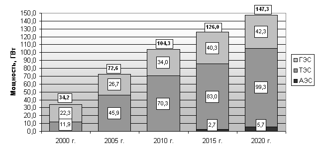 Текущее кризисное состояние российской энергетики исторически определяется системным спадом промышленного потребления электроэнергии с 1991 по 1998 год, а так же целым рядом общеэкономических и специфических факторов. Вертикальная интегрированность компаний и, как следствие, их непрозрачность, не позволяют установить истинные масштабы неэффективных затрат, позволяют компаниям проводить перекрестное субсидирование разных видов бизнеса. Постоянно растущая дебиторская задолженность энергопредприятий, неэффективность тарифного регулирования в энергетике, неплатежи, отсутствие стимулов к снижению издержек производства, недостаток ликвидных средств при оплате за поставленную электроэнергию привели к снижению притока инвестиций в электроэнергетику в 6 раз. Как результат, уже к 2000 году износ производственных мощностей РАО "ЕЭС России" достиг 40%, в том числе линий электропередач – 35,5%, подстанций – 63,1%, зданий и сооружений – 23,1%, устройств релейной защиты и автоматики – 44%. В настоящее время выработали ресурс 34 млн. кВт, или 16% мощности электростанций России, в том числе ГЭС — 22, ТЭС — 12 млн. кВт. В перспективе произойдет лавинообразное нарастание объемов выработавшего свой ресурс основного энергетического оборудования. Так, к 2010 г. 104 млн. кВт, или около 50% действующего в настоящее время оборудования ТЭС и ГЭС, выработает свой ресурс, а к 2020г. – 150 млн. кВт, что составит около 70% (рисунок 1).