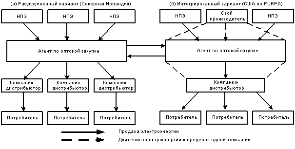 При переходе государственной отрасли промышленности к Модели 2 существующая электростанция может быть продана частным покупателям на основе тендера вместе с контрактами на продажу электричества закупочному агентству. Именно это было осуществлено в Северной Ирландии. В качестве альтернативы, орган регулирования может распорядиться, чтобы коммунальная компания, относящаяся к Модели 1, покупала электроэнергию, на которую появился спрос, у НПЭ на основе конкурентного предложения. Этот метод чреват потенциальными конфликтами. В США система, основанная на Модели 2, была введена PURPA, который потребовал, чтобы коммунальные компании покупали по ценам, основывающимся на «устранимых издержках».